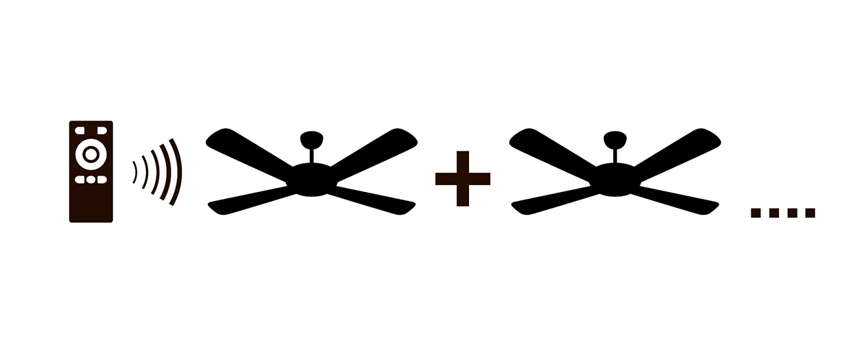 - Управляйте одним пультом ДУ всеми потолочными вентиляторами одновременно!