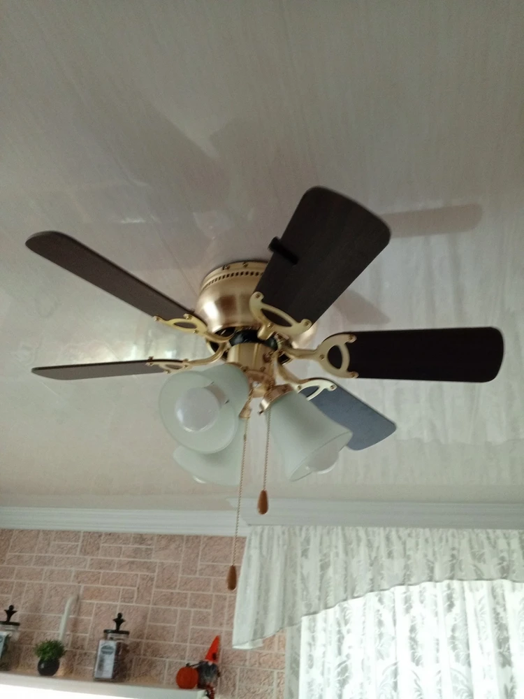 Люстра норм. Все работает без проблем. Установка тоже не сложная, ещё и инструкция присутствует. Хотелось бы, конечно, скорость побольше, слабовато дует. Пришлось немного изменить угол лопастей (хотя и это тоже не помогло). Очень тихо работает и даже балансировать не пришлось. Коротковаты цепочки-выключатели, я бы сказал, очень короткие. Но это не проблема, можно удлинить или вообще заменить. В общем нормально.