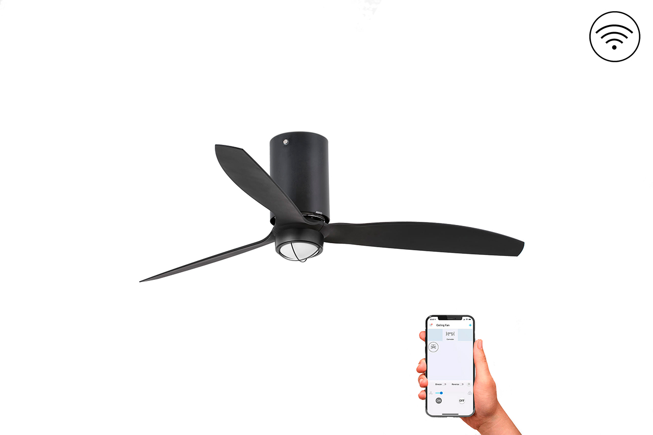 С помощью смартфона с установленным приложением WiZ пользователь может изменить направление движения лопастей. Вращение лопастей «по часовой стрелке» обеспечивает процесс рекуперации тепла в помещении (рекомендуется применять в холодное время года), путем перемещения теплого воздуха от потолка вниз. Вращение лопастей «против часовой стрелки» создает обратный эффект охлаждения воздуха в помещении.