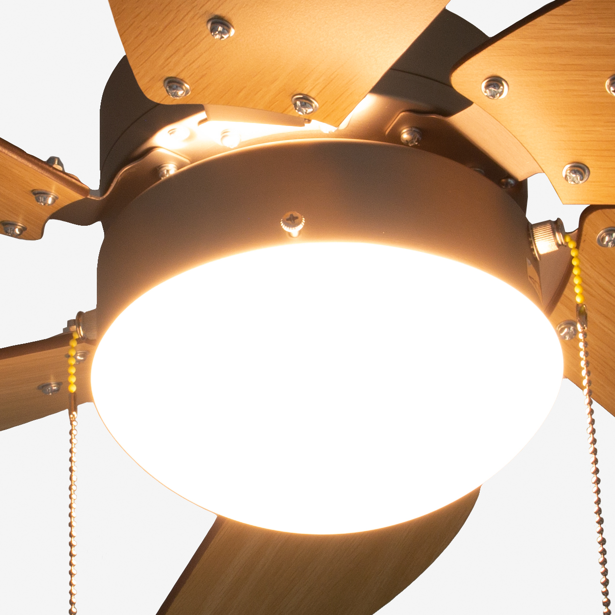 Великолепный ретро светильник, идеально подошёл нам в нашем доме, в отличие от напольных вентиляторов, движение воздуха более мягкое и равномерное. Работает практически бесшумно. Лопасти с одной стороны тёмные, с другой светлые, выбрали пока тёмную сторону. Оооооочень рада покупке и вся семья довольна.