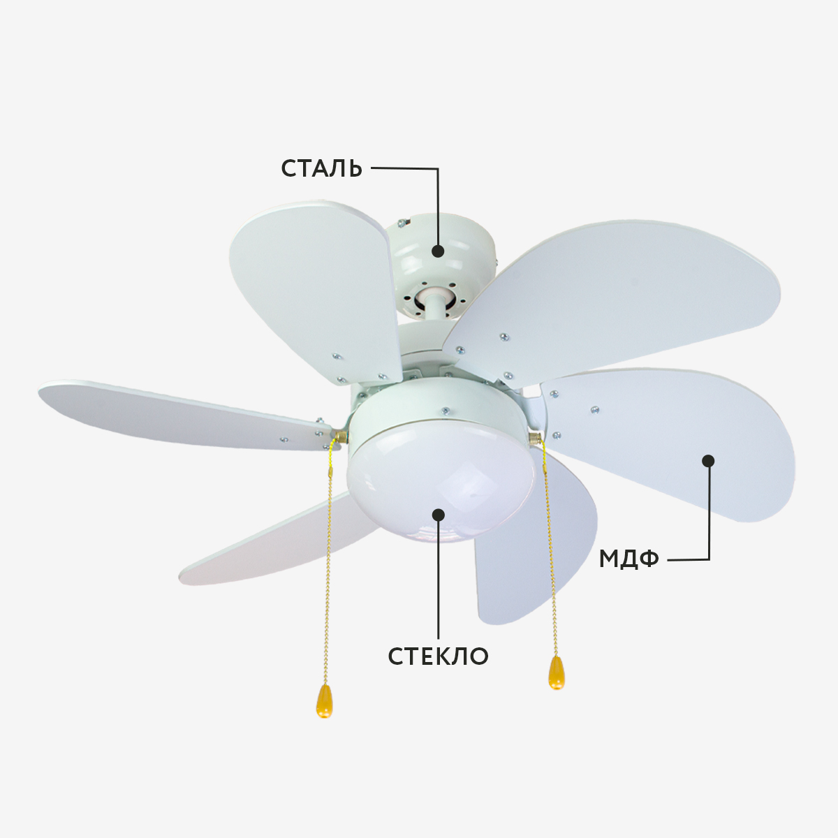 Лопасти вентилятора выполнены из клеёного влагостойкого МДФ.