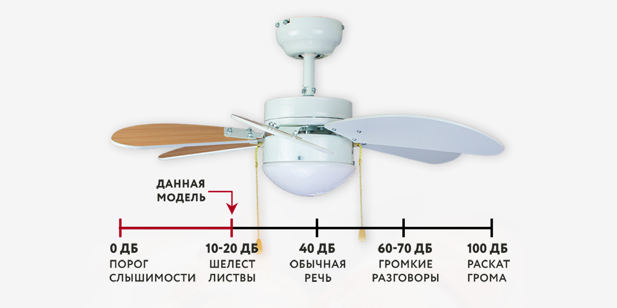 При работе вентилятора на максимальной скорости слышен исключительно тихий звук лопастей, рассекающих воздух. Звук работающего двигателя отсутствует.