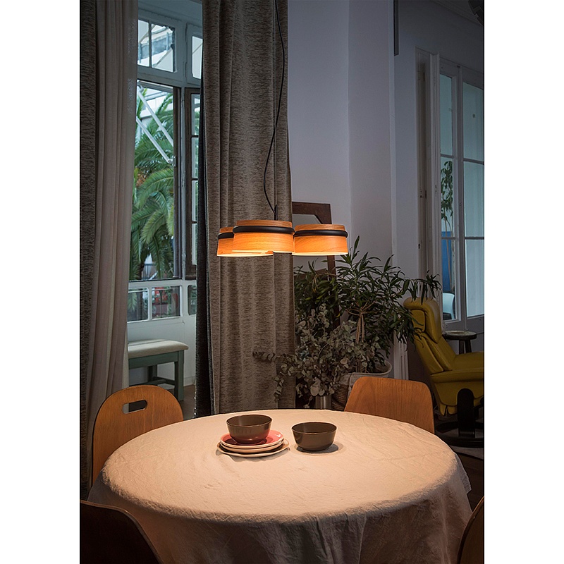 В создании светильников серии Loop участвовали лучшие дизайнеры. Для арматуры светильника использовался – металл, цвет – черный. Для производства плафона использовалось – металл/натуральное дерево, цвет плафона - черный/вишневое дерево. Форма плафона – цилиндр.