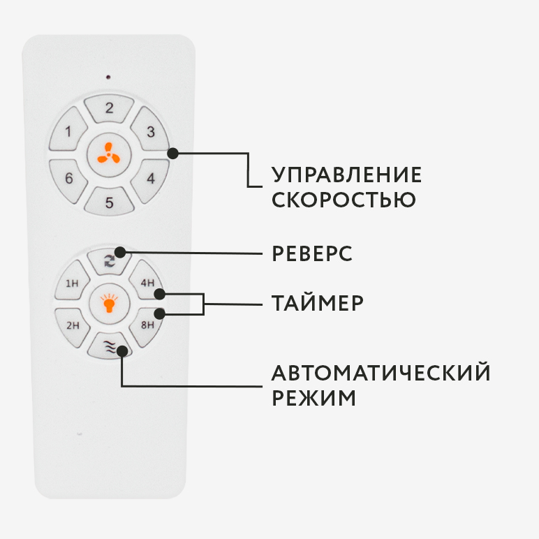 - таймер — позволяет установить таймер отключения вентилятора. После нажатия на одну из этих кнопок вентилятор проработает 1/2/4/8 часов соответственно на выбранной заранее скорости и выключится;