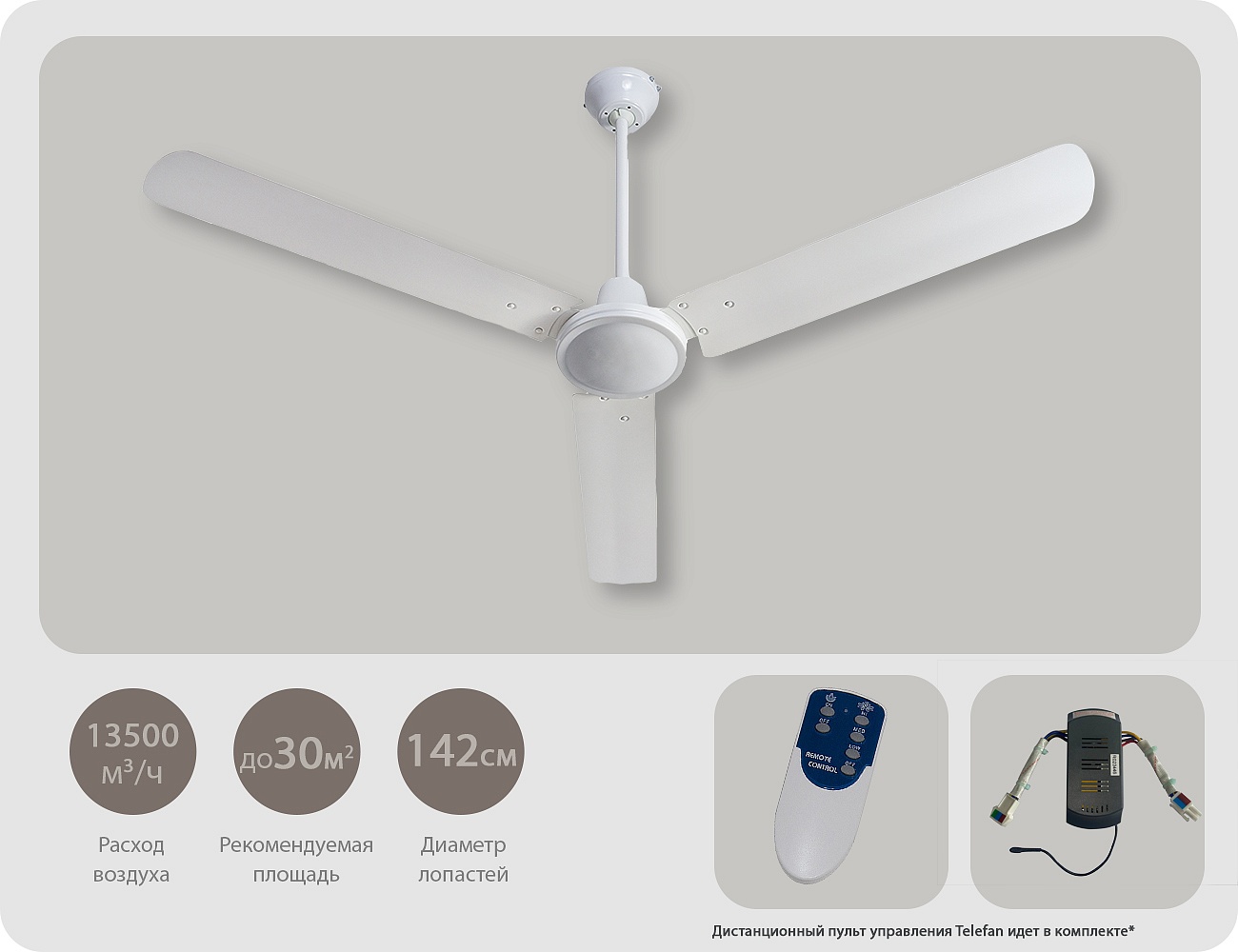 Потолочный вентилятор Simple RC 142 (90142DFN) применяется в промышленных и бытовых помещениях различного назначения, чтобы обеспечить беззвучное охлаждение и рекуперацию теплого воздуха зимой.