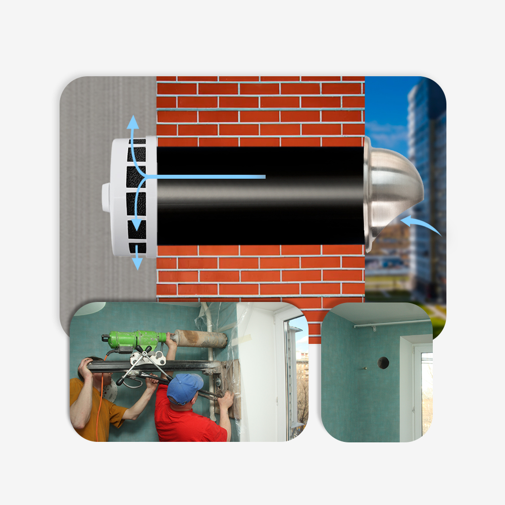 Стенной выход актуален для систем воздухообмена в коттеджах, квартирах, производственных цехах, офисных зданиях или сервисных помещениях.