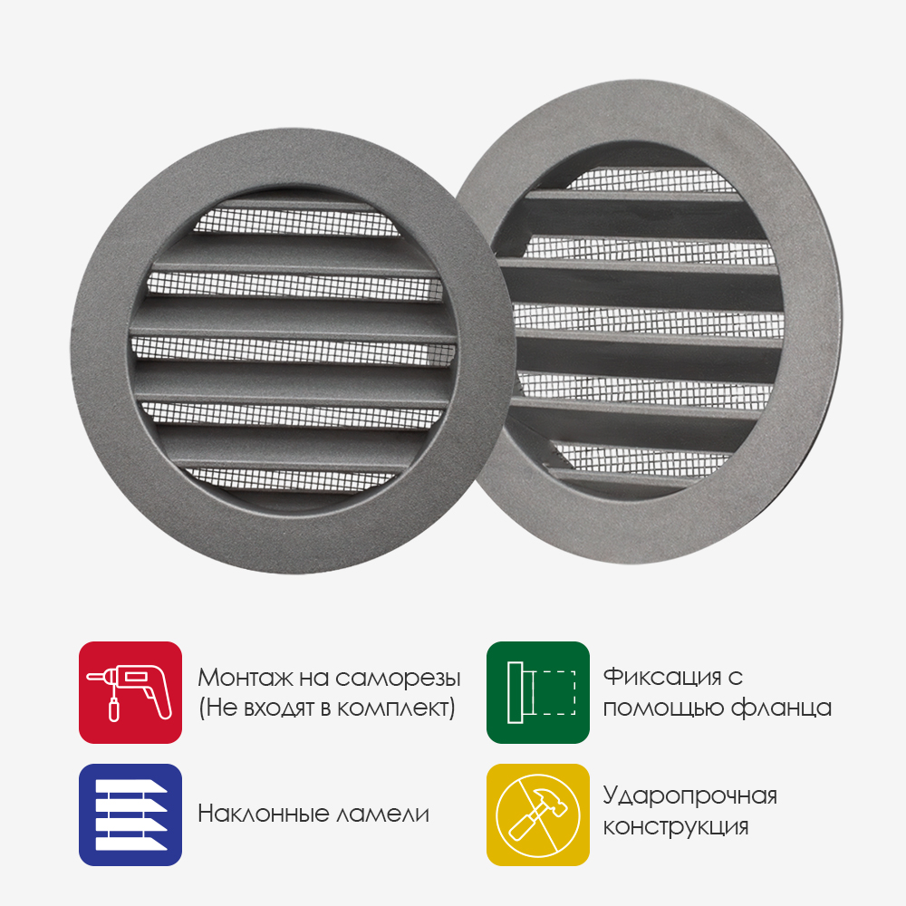- Фиксация с помощью фланца: за счет фланца конической формы, решетка идеально подходит к воздуховодам и вентиляционным каналам диаметром 100 мм;