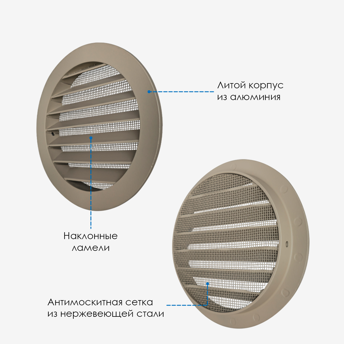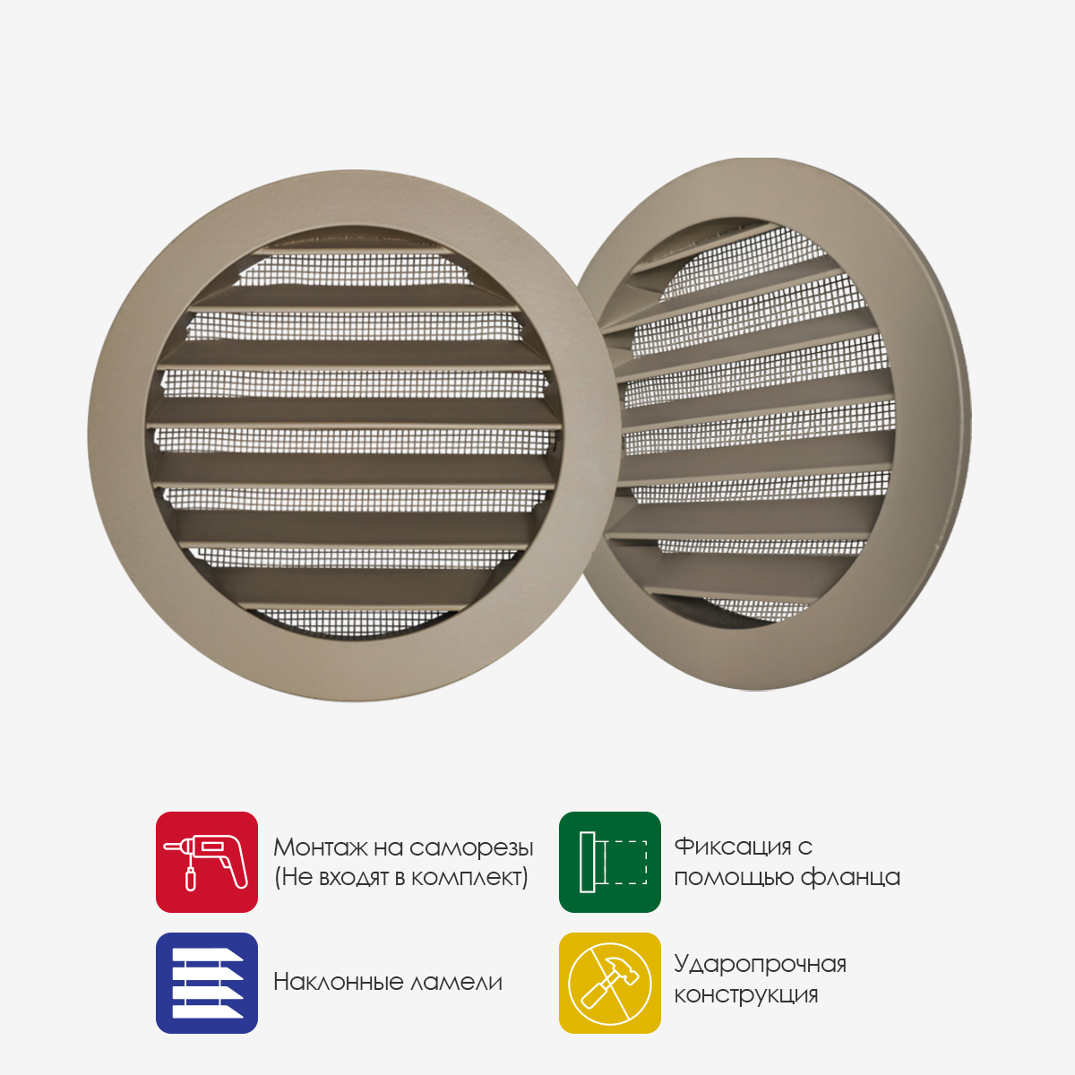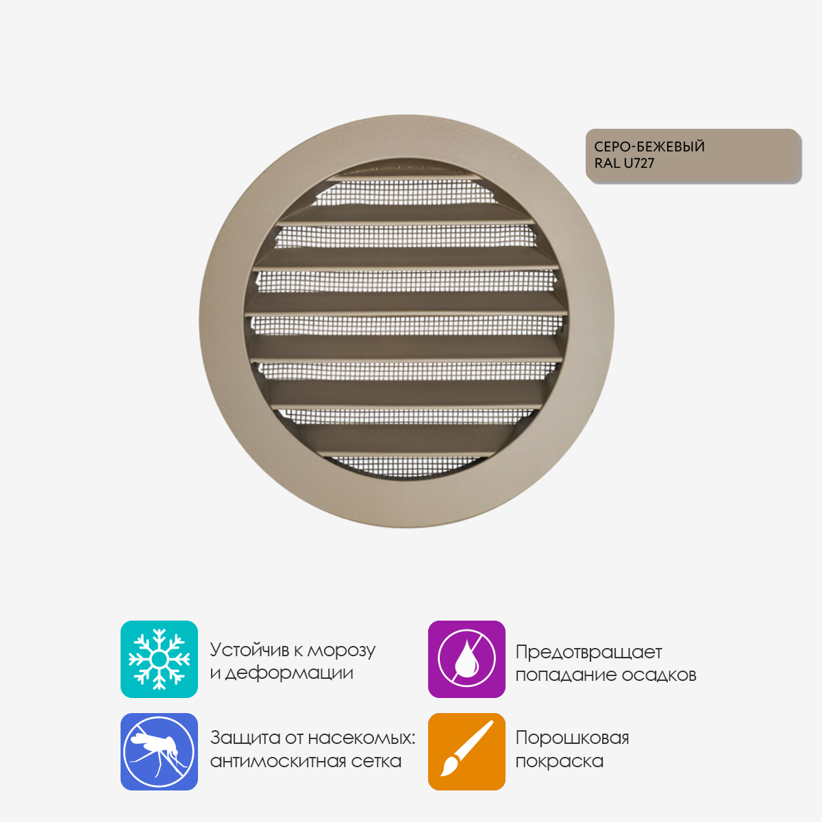 Вентиляционная решетка металлическая антивандальная ARIUS Usav-125 stone grey решетка, 125 мм, cеро-бежевая RAL U727 (136234)