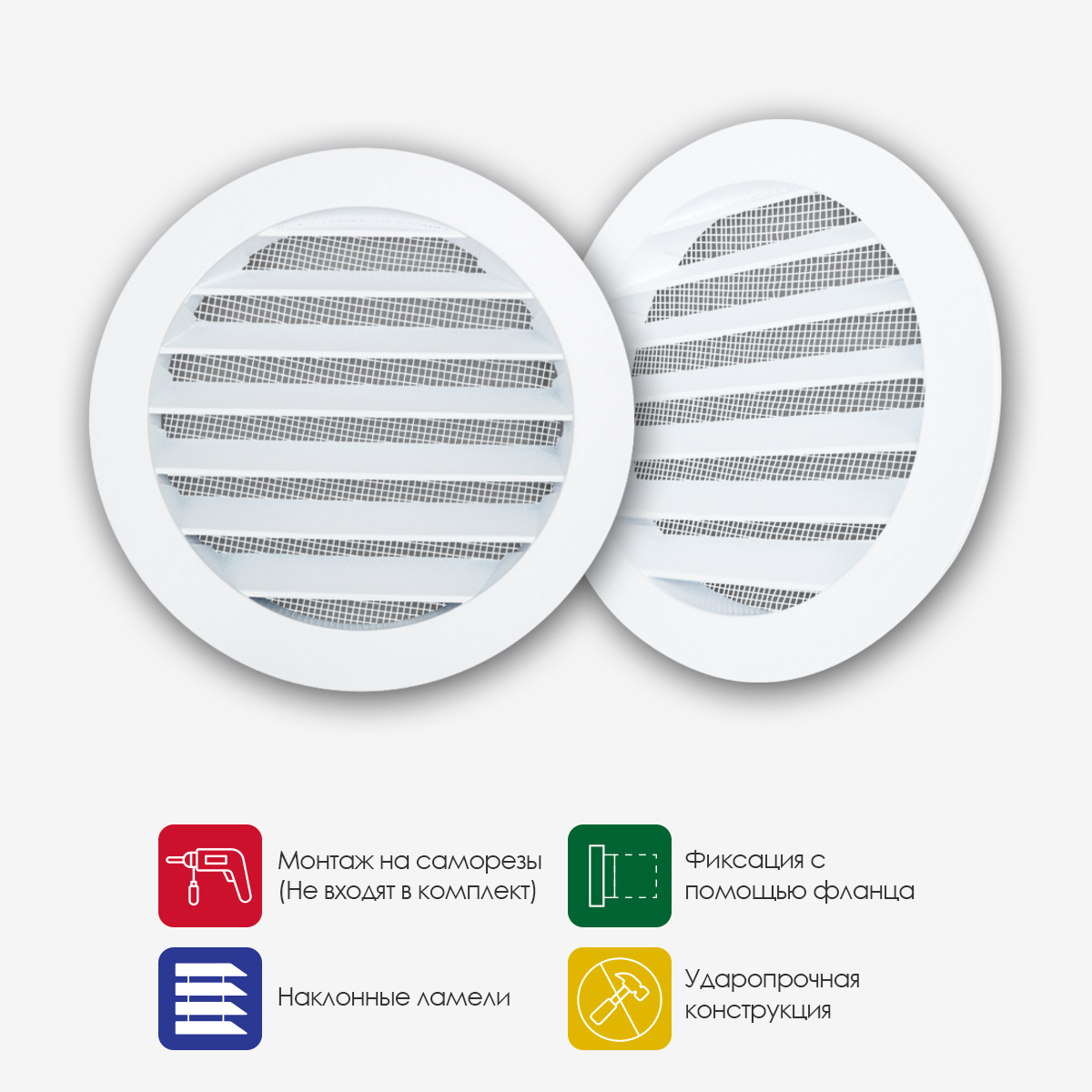 - Монтаж на саморезы: на фланце решетки присутствуют 2 отверстия, через которые осуществляется монтаж на саморезы (не входят в комплект поставки);