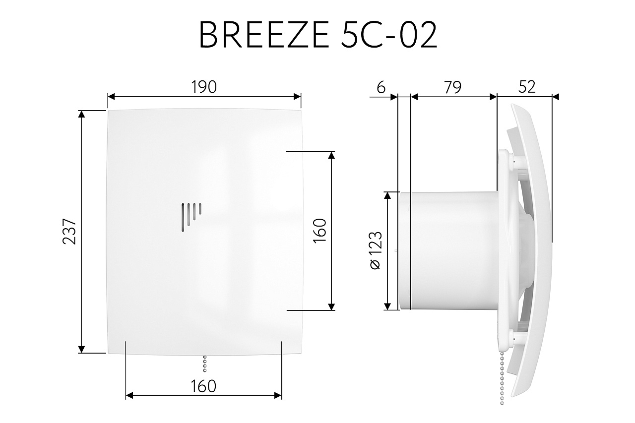 Серия вентиляторов Breeze создана с нестандартной формой корпуса и лёгкосъёмной лицевой панелью из высококачественного ABS-пластика. Благодаря этому помыть, либо просто убрать пыль с корпуса и крыльчатки достаточное просто. Вентиляторы имеют лаконичный дизайн и двигатели на шарикоподшипниках, не требующие дополнительного обслуживания. Так же отличительной особенностью приборов данного ряда является низкое энергопотребление в сочетании с тихой работой. Модель Breeze 5C-02 оснащена защитой от перегрева и обратным клапаном, препятствующим проникновению посторонних запахов из шахты. Степень защиты IP24 дает возможность использовать вентилятор в помещениях с наличием твердых частиц, осаждаемых на поверхностях, и/или в местах, подвергающихся попаданию водяных брызг. Механическое включение и выключение вентилятора происходит благодаря тяговому выключателю. Достаточно простой настенно-потолочный монтаж осуществляется с вентиляционными воздуховодами, либо самостоятельно на ровную поверхность при помощи саморезов. Установка в горизонтальном положении возможна только при снятии обратного клапана.