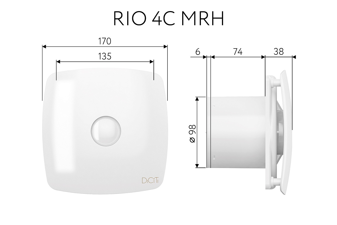 Вентилятор DiCiTi Rio 4C MRH (133991) предназначен для непрерывной или периодической вытяжки в бытовых помещениях. Модель прекрасно зарекомендовала себя в использовании в кухнях, санузлах, душевых и других небольших комнатах нуждающихся в вентиляции.